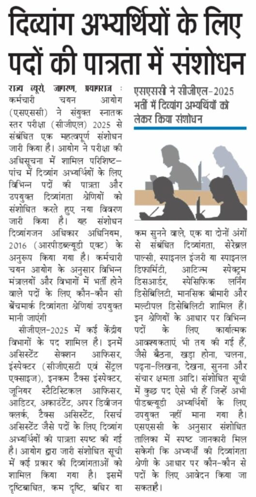 यह संशोधन सभी दिव्यांग (PwBD) उम्मीदवारों के लिए लाभकारी है, क्योंकि अब उन्हें स्पष्ट जानकारी मिलती है कि वे किन पदों के लिए आवेदन कर सकते हैं।