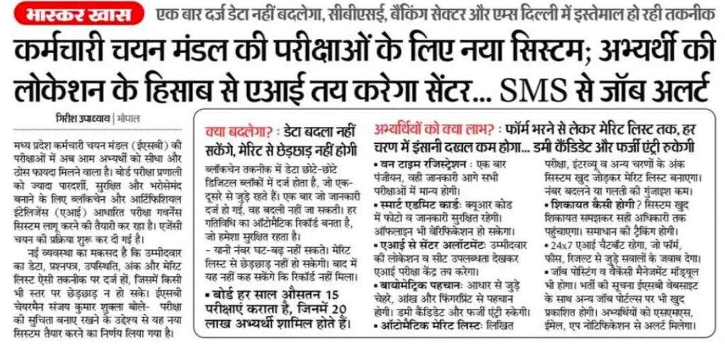 Staff Selection Commission (SSC) देश की सबसे बड़ी भर्ती एजेंसियों में से एक है, जो हर साल लाखों युवाओं को सरकारी नौकरी पाने का अवसर प्रदान करती है। SSC अपनी परीक्षाओं में पारदर्शिता, सुरक्षा और निष्पक्षता सुनिश्चित करने के लिए लगातार नई तकनीकों को अपनाता रहता है।अब SSC अपनी परीक्षा प्रणाली में एक अत्याधुनिक AI आधारित सिस्टम लागू करने जा रहा है, जिससे परीक्षा प्रक्रिया पहले से भी ज्यादा सुरक्षित, भरोसेमंद और स्मार्ट हो जाएगी।इस नए सिस्टम की सबसे बड़ी खासियत यह है कि एक बार दर्ज किया गया डेटा बदला नहीं जा सकेगा। इसके अलावा, उम्मीदवारों का परीक्षा केंद्र उनके लोकेशन के आधार पर AI द्वारा तय किया जाएगा, और उन्हें SMS के माध्यम से जॉब अलर्ट भी प्राप्त होंगे।