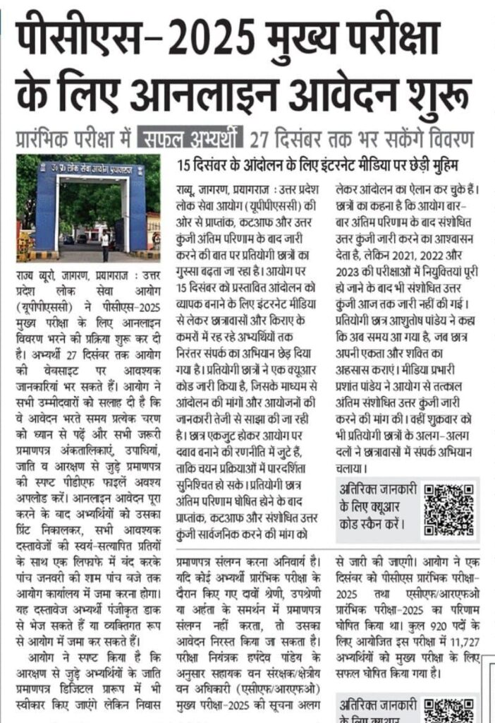 मुख्य परीक्षा के फॉर्म भरने के बीच, कुछ Aspirants ने आयोग के खिलाफ नाराजगी जताई है। छात्र 15 दिसंबर 2025 को प्रस्तावित आंदोलन को व्यापक बनाने की तैयारी कर रहे हैं।